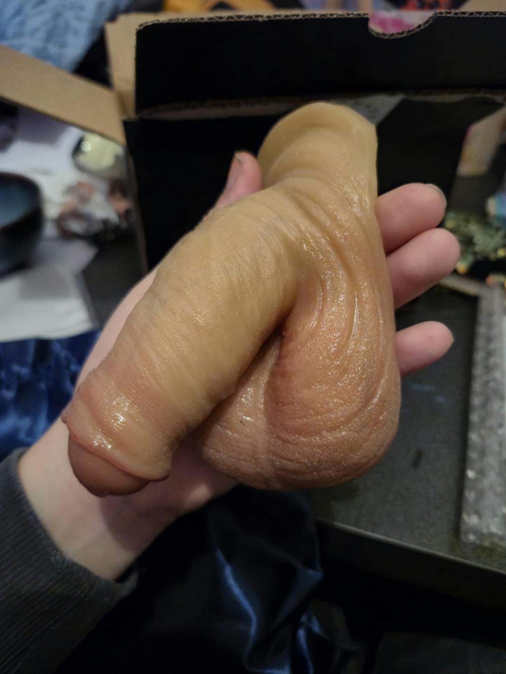 I opened the package up and I was like oh no this is way too big, this is going to look ridiculous! But I put it on using trans tape and put my boxers over and pants and I was pleasantly surprised it wasn't that noticeable at all which makes me feel less dysphoria. I then danced around bottomless, and watched it swing around feeling like it was part of me. I have never felt this euphoria before, incredible product. The balls are abit on the long side but other than that I can't complain. Thank you
