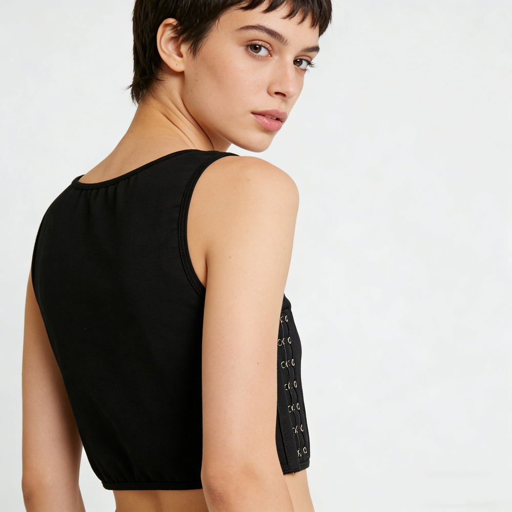 The widened side panels naturally smooth out excess lines under the armpits and sides of the chest, creating a smoother, straighter silhouette and effectively preventing wardrobe malfunctions. Wearing T-shirts, shirts, or close-fitting tops is more comfortable. The overall cut ensures both flattening and freedom of movement, making the bustier safer and more sustainable.
