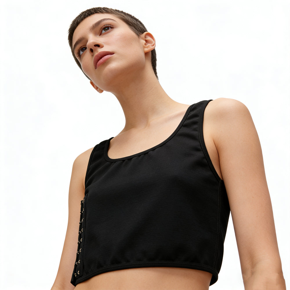 This bustier is designed for the daily wear needs of FTM and non-binary users. It features a three-row, eight-button structure, allowing for flexible adjustment to fit different bust sizes and body shapes. It's easy to put on and take off, even for beginners. The widened, pressure-relieving, non-slip shoulder straps effectively distribute shoulder pressure, reducing discomfort from prolonged wear and providing stability during activity.